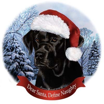 Dog in Santa Hat Porcelain Hanging Howliday Ornament (Black Lab)