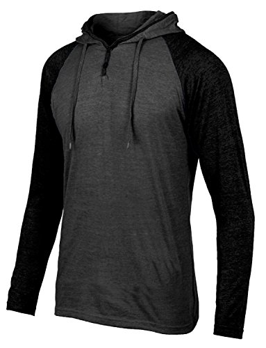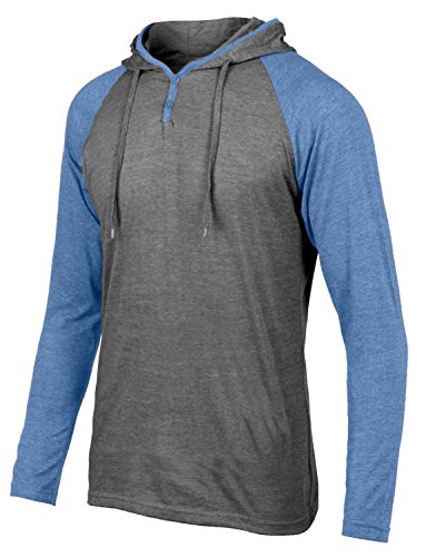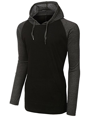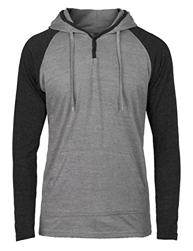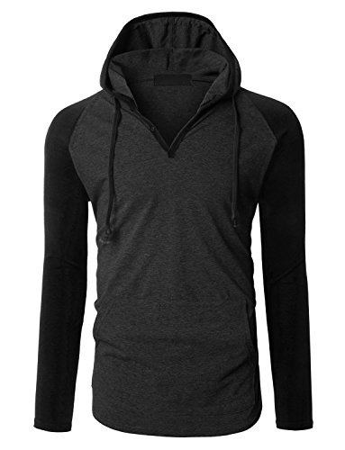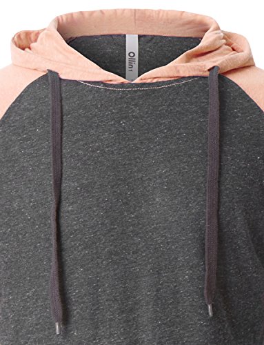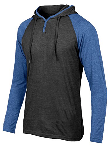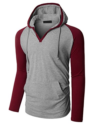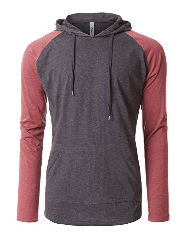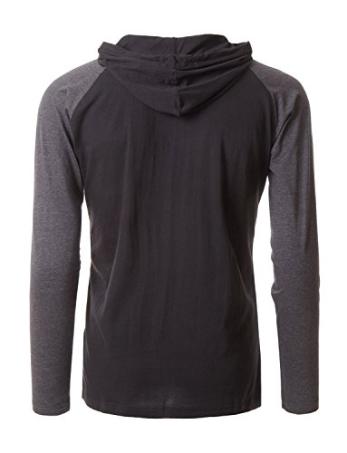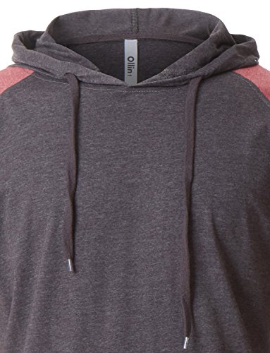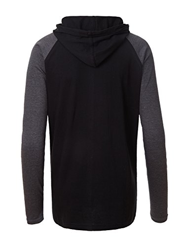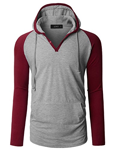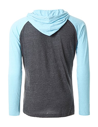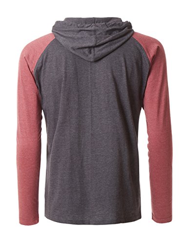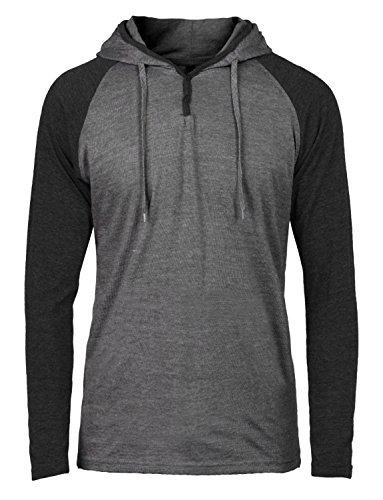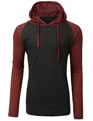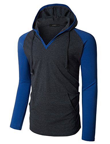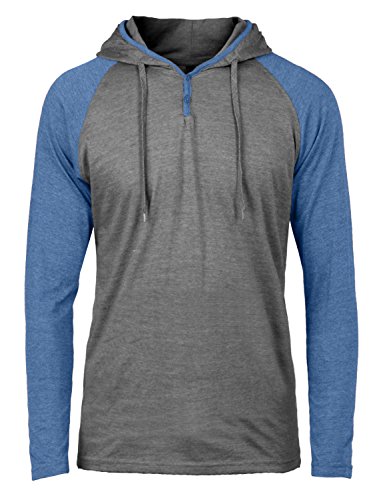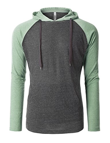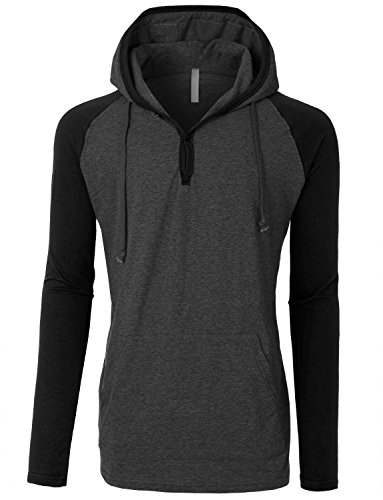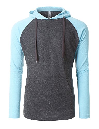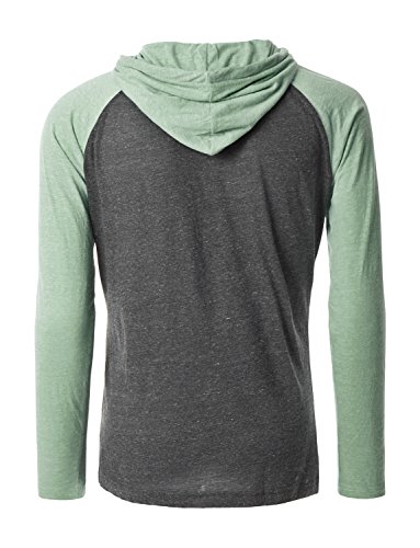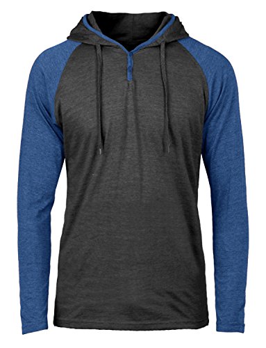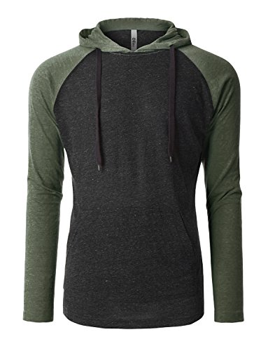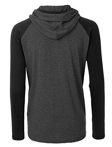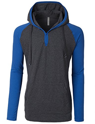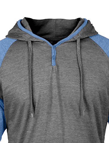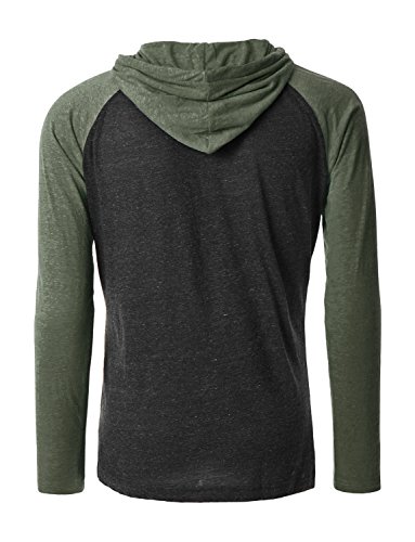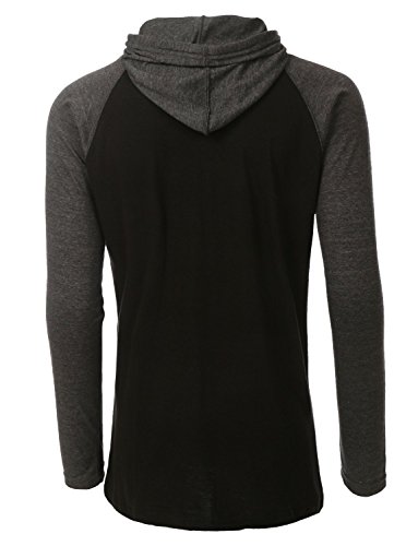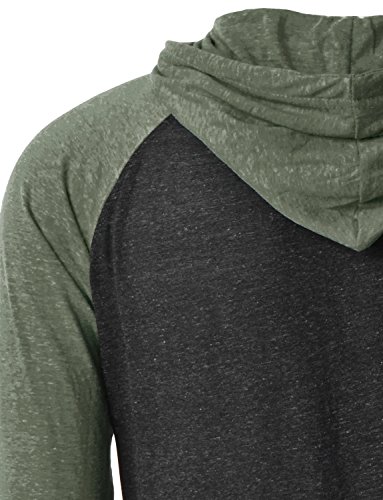 | OLLIN1 Mens Long Sleeve Color Block Raglan Shirt with Hoodie |