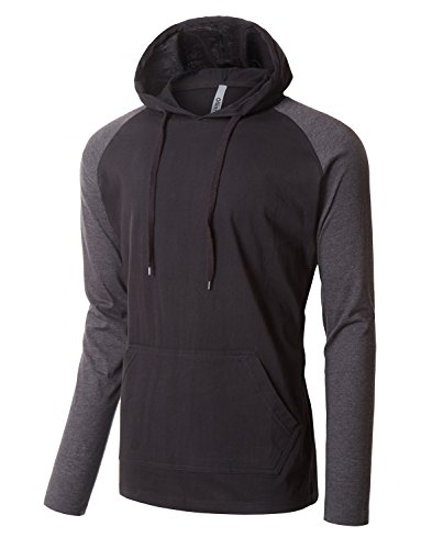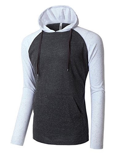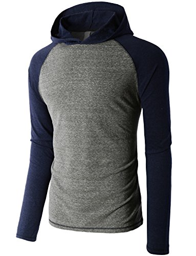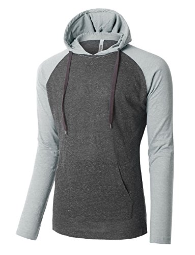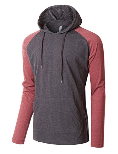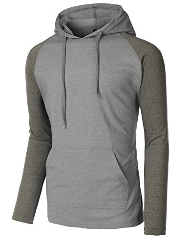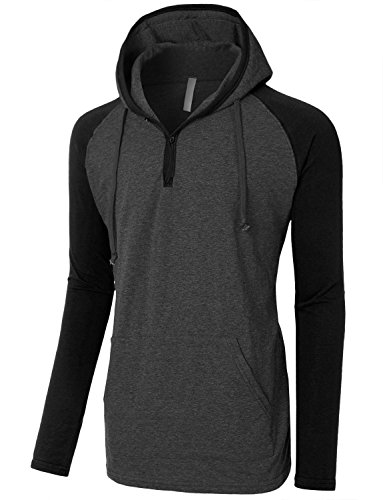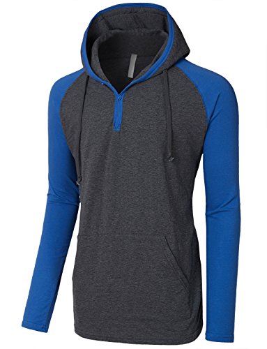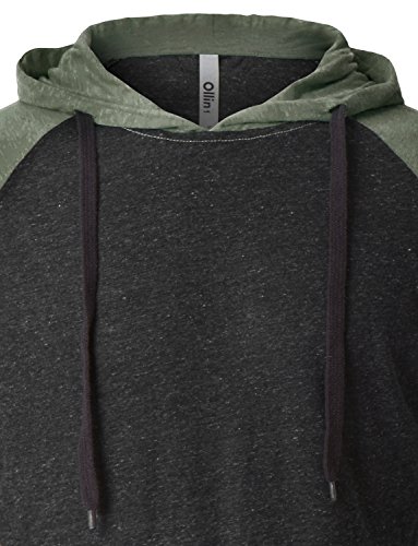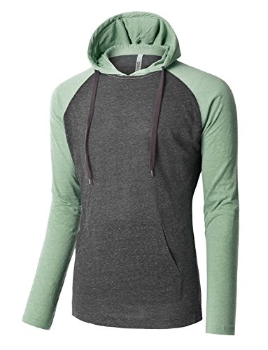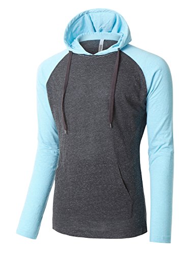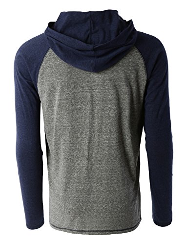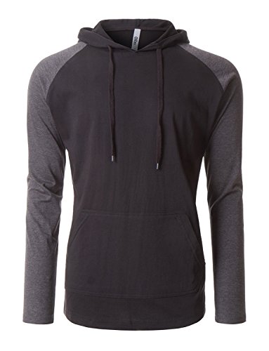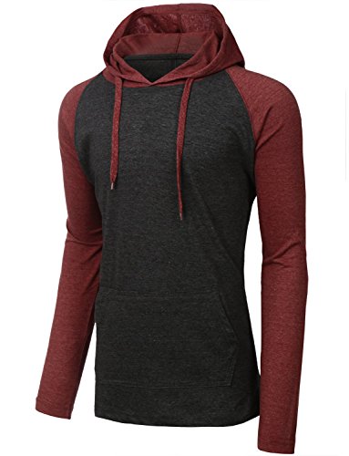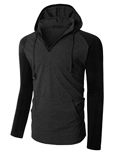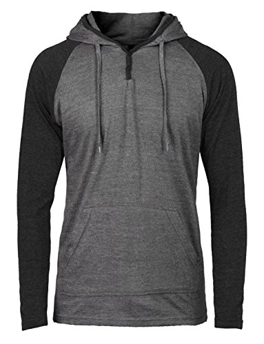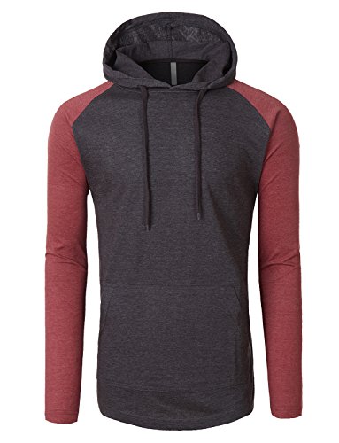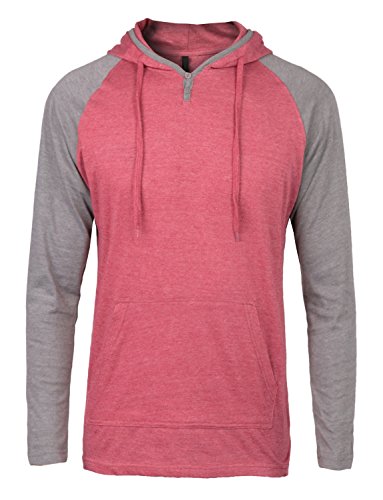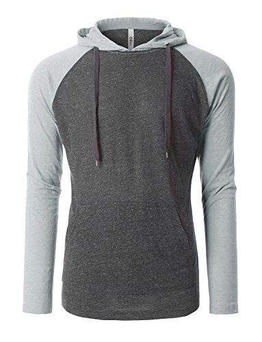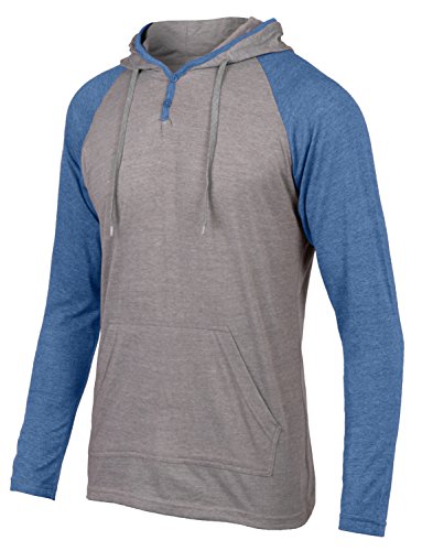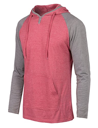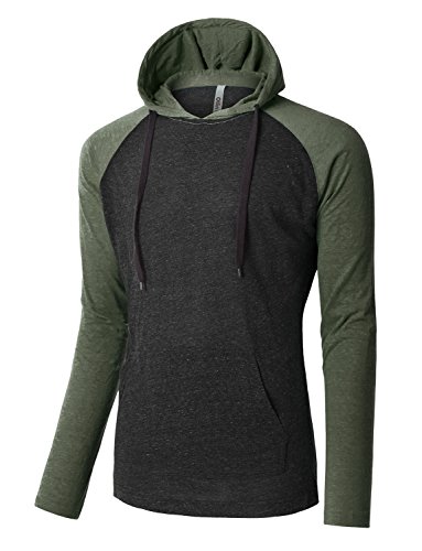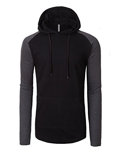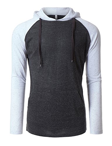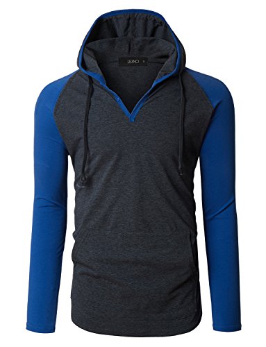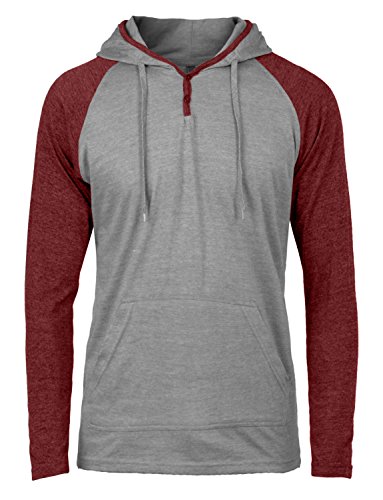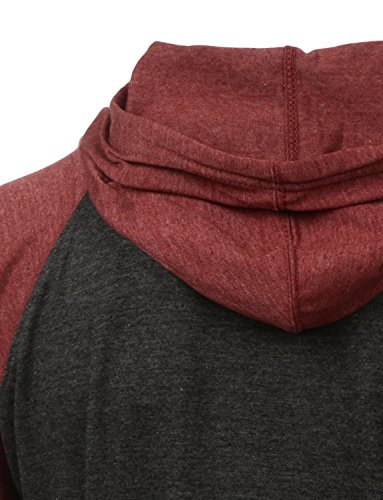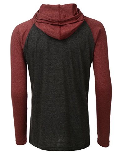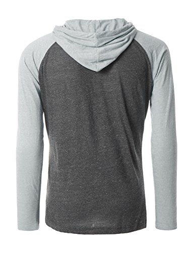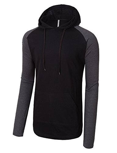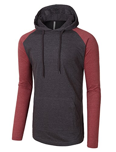 | OLLIN1 Mens Long Sleeve Color Block Raglan Shirt with Hoodie |