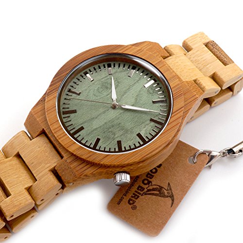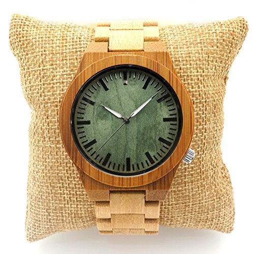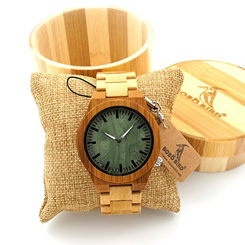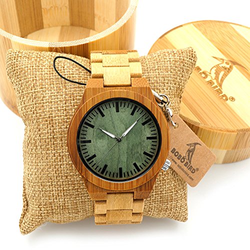 -. Title : BOBO BIRD Men's Top Brand Design Green Wood Dial Watch with Full Bamboo Wooden Bands in Round Box