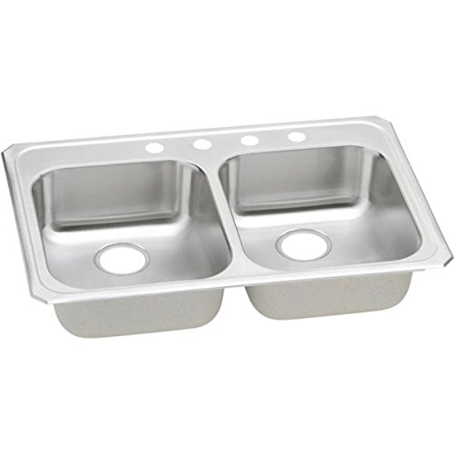 Elkay GECR33211 1-Hole Gourmet 21-1/4-Inch x 33-Inch Double Basin Drop-In Stainless Steel Kitchen Sink