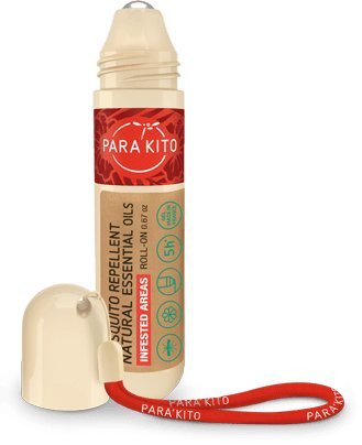 -. Binding : Sports -. Brand : PARA'KITO -. Color : Roll-On -. EAN : 0865966000033 -. Feature : PARA'KITO Roll-On Applicator enables fast and precise application to body and face, without overspray or dripping / Works in all climate zones - temperate & tropical. It's even waterproof / Has been shown to reduce the number of Tiger mosquito landings for up to 5 hours in a laboratory / Natural essential oils/ingredients - 0.67 oz / Easy to use secured closure for all activities -. IsAdultProduct : 0 -. Label : PARA'KITO -. Manufacturer : PARA'KITO -. Model : 9994864 -. MPN : 4237027 -. PackageQuantity : 1 -. PartNumber : 4237027 -. ProductGroup : Lawn & Patio -. ProductTypeName : OUTDOOR_LIVING -. Publisher : PARA'KITO -. Studio : PARA'KITO -. Title : PARA'KITO All Natural Mosquito Repellent Roll-On-Gel -. UPC : 865966000033