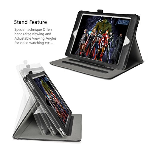 iPad Air 2 Case, F-color?? Flip Kick Stand Case Cover, Light Weight Slim Fit Premium Protective PU Folio Leather Case Cover with Card Slots, Stylus Holder and Magnetic Closure, Black