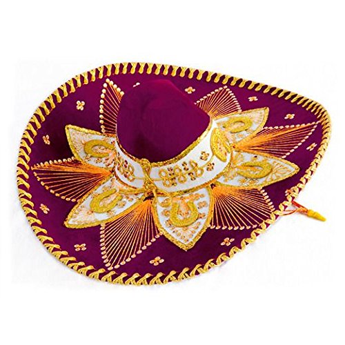 -. Title : Burgundy and Gold Mariachi Sombrero