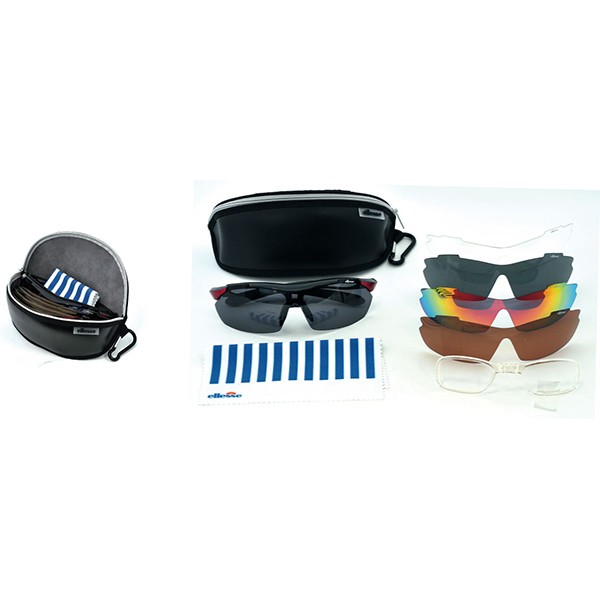 こちらのスポーツサングラスは、度付き対応が可能なインナーフレームと、簡単に取り換え可能な5枚の交換レンズがセットになっています。スキー、サイクリング、ジョギング、ゴルフ、釣り、登山など様々なシーンでお使いいただけます。シーンにあわせて着脱自在なレンズは、「偏光スモーク(可視光線透過化率18%)」、「偏光ブラウン(可視光線透過率24%)」、「リーボミラー(可視光線透過率15%)」、「グリーン(可視光線透過率17%)」、「クリアー(可視光線透過率93%)」の5種類です。フレームの素材は安全な超弾性樹脂を使用し、日本人の骨格に合わせたフレーム設計になっています。
