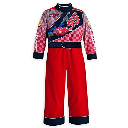 -. Binding : Toy -. Brand : Disney Interactive Studios -. Color : Red -. Department : boys -. EAN : 0788128554307 -. Feature : Authentic and exclusive Disney Store costume with reliable quality and durability / One-piece racing suit features flashing lights on vinyl McQueen appliqué (activated by hidden switch), McQueen and Team 95 screen art, and Rust-eze vinyl logo appliqué on sleeve / Cadet collar and attached belt with self-stick fabric fastening; Front torso flap with self-stick fabric closure; Metallic ''chrome'' piping / Requires 4 x LR1130 batteries (included) / Size XS 4 for ages 3-4 years old, 33-37 lb and 38-42" in height -. Label : Disney Store -. Manufacturer : Disney Store -. ProductGroup : Toy -. ProductTypeName : TOYS_AND_GAMES -. Publisher : Disney Store -. Size : X-Small -. Studio : Disney Store -. Title : Disney Store Cars Lightning McQueen Costume Light-Up Racing Suit Size XS 4 (4T) -. UPC : 788128554307