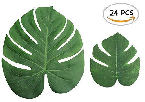 Fake Faux Artificial Tropical Palm Leaves for Home Kitchen Party Decorations or Handcrafts 24 Counts (14 Inch and 8 Inch) by ZXSWEET