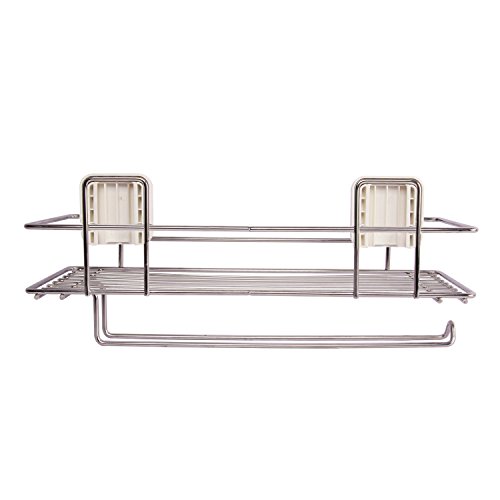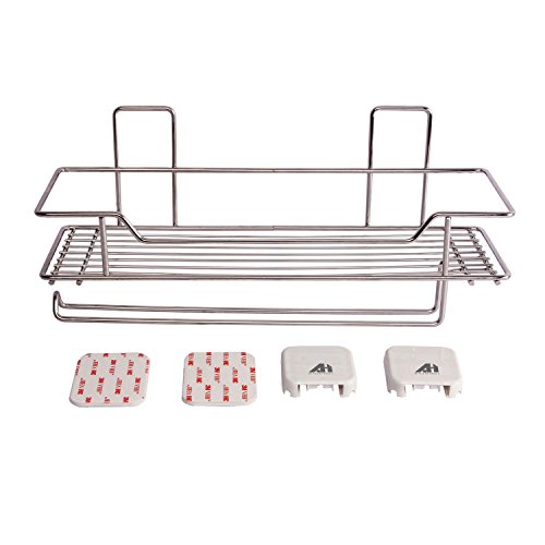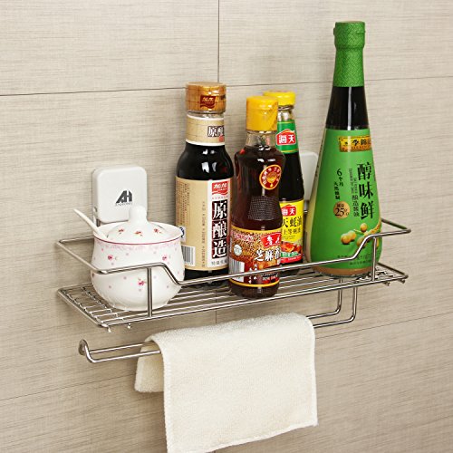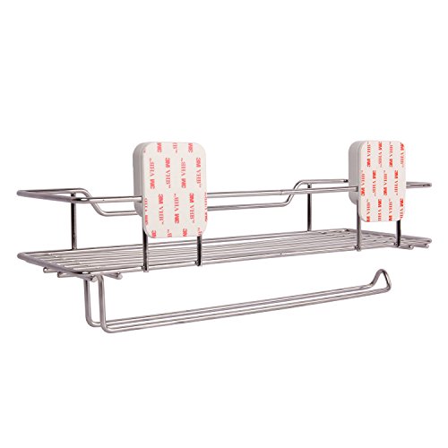 ANHONG [Nail Free] [No Tools Required] [5Kg Load Bearing] 3M Very High Bond VHB Adhesive Multifunctional Stainless Steel Storage Shelf Organizer for Kitchen and Bath with Towel Rack, Chrome