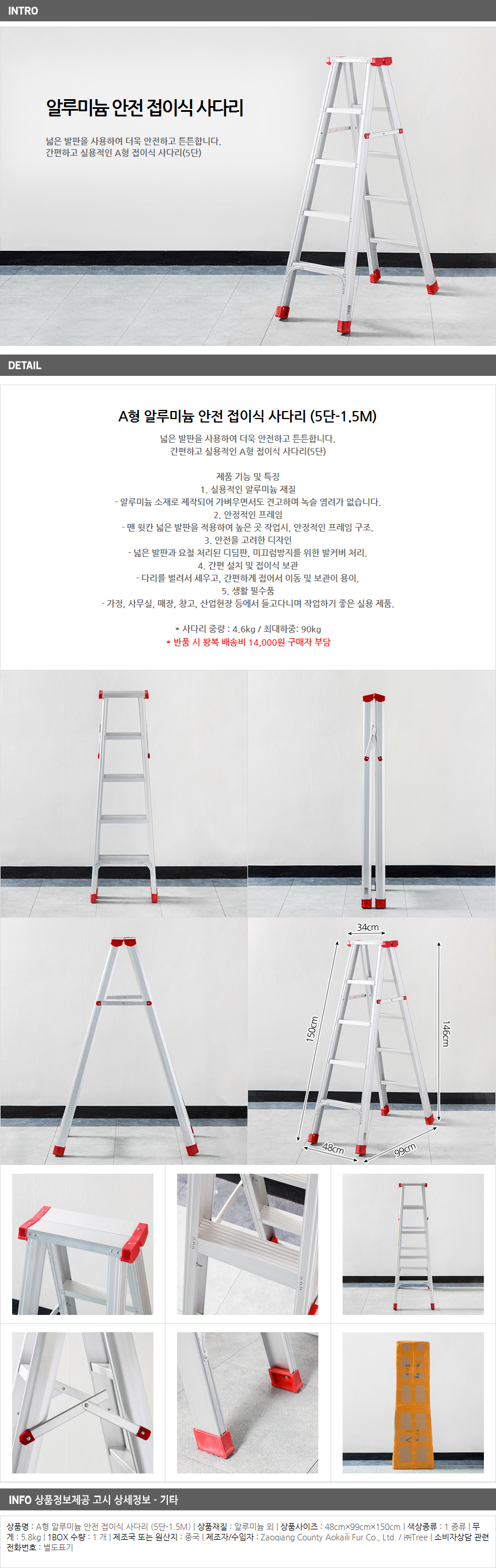 Aluminum safety folding ladder 5 step - 1.5M stain A type
