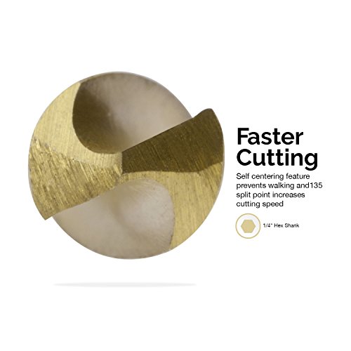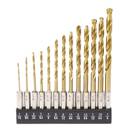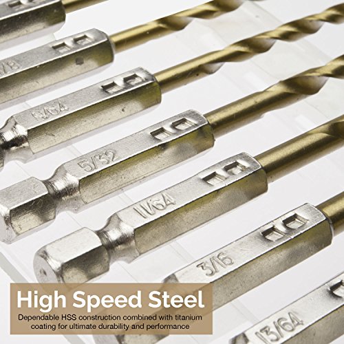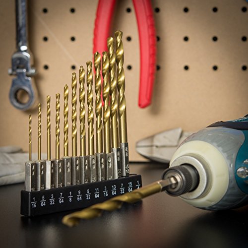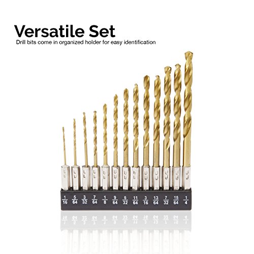 Tooluxe 10171L 13-Piece Titanium Drill Bit Set, High Speed Steel | Quick Change 1/4” Hex Shank