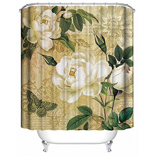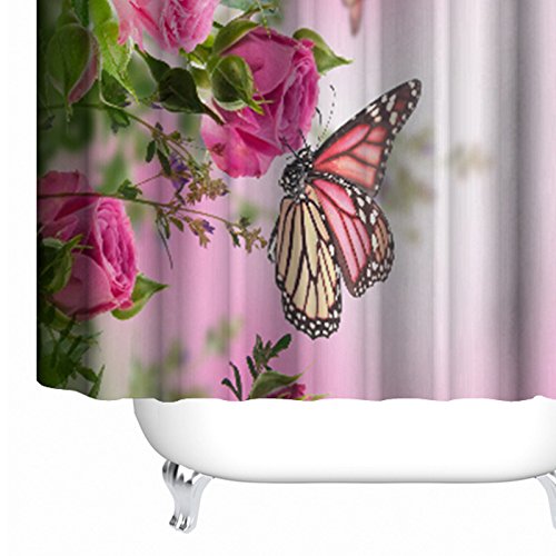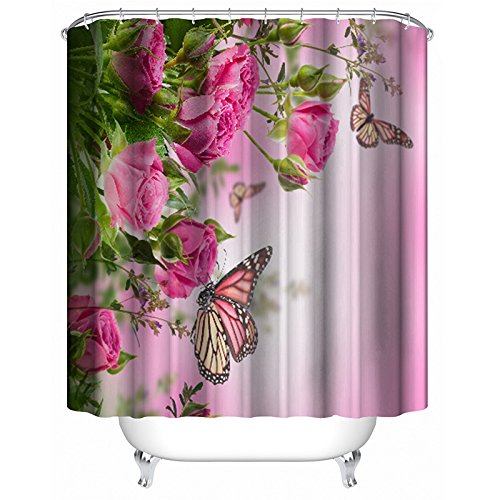 -. Title : ALDECOR Peony Flower Shower Curtain, Customized Flower Butterfly Waterproof and Mildewproof Polyester Fabric Bath Curtain 72x80 inch