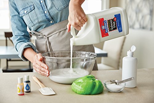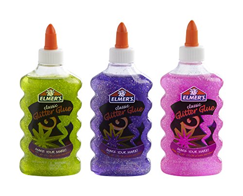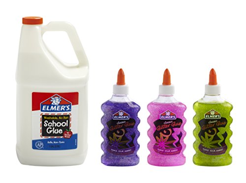 Includes: 1 gallon of Elmer’s Liquid Washable School Glue and 6-ounce bottles of Purple, Pink and Green glitter glue
