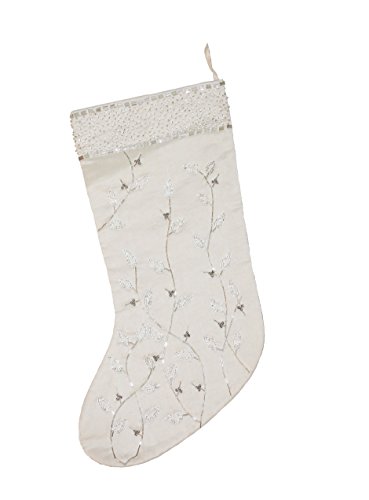 Arcadia Home Ivory Silk Stocking with Hand Beaded Silver Branches