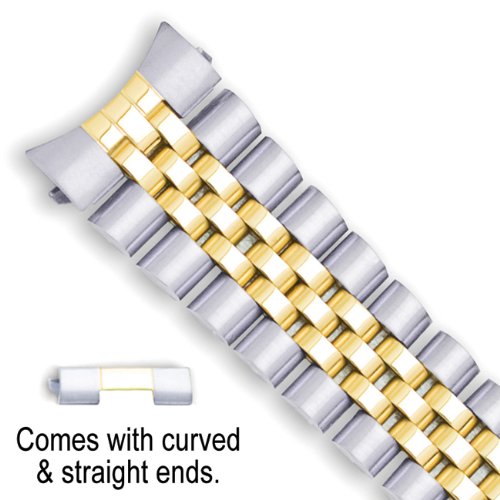 -. Title : Jubilee Style Link Metal Watch Band - Two Tone - 20mm