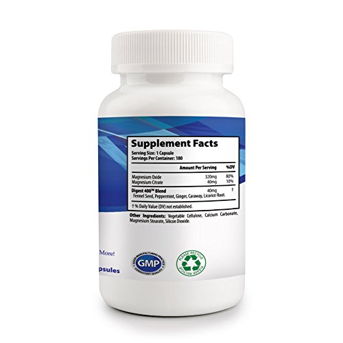 -. Feature : Digestive Support & Cleansing formula Magnesium & herbal blend for Constipation, Digestion Health & Detox. / Fast Relief for Digestion Health - Magnesium plays a role in the body's digestive enzyme activity. This all natural supplement serves as an osmotic laxative that can aid bowel movement by acting as a stool softener, which can promote improved regularity which will reduce constipation and stomach bloating. Soft release for body detox & cleasing which helps eliminate wastes from your system / Magnesium Complex also supports bone, muscle & nerve health, helps increase energy levels, supports cardiovascular health, and helps calm nerves & anxiety. / 180 high bioavailability & absorption Veggie Capsules per bottle all Made in USA supplement by FDA & cGMP approved facility / Contains 400mg of Magnesium complex and herbal blend. Vegan safe. Only need 1 capsule per day before bedtime. 30 days money back.