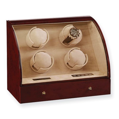 -. Title : Gold and Watches Dark Burlwood Gloss Finish 4-Watch Watch Winder