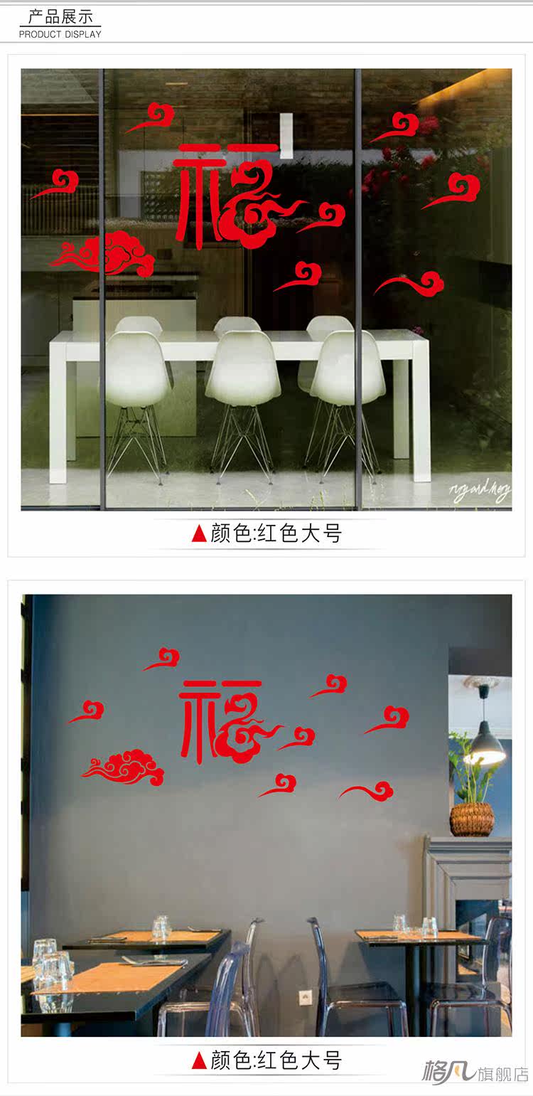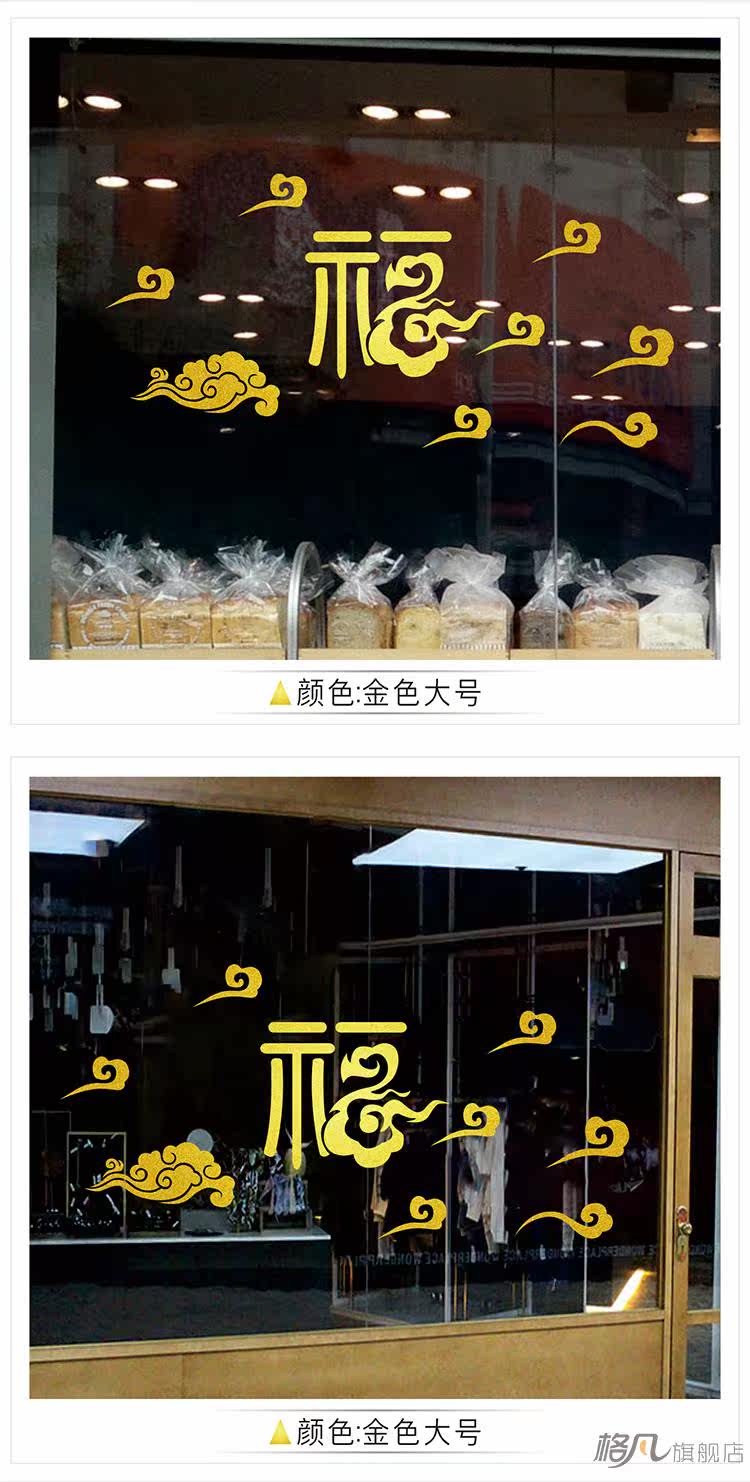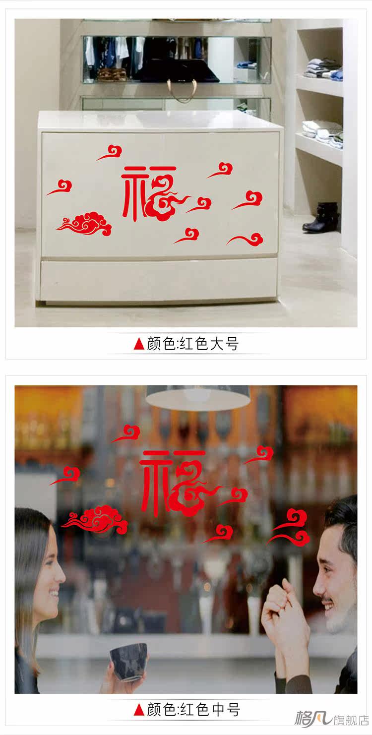 新年墙贴画年画春节福字祥云元旦装饰布置橱窗玻璃门窗花贴纸门贴
