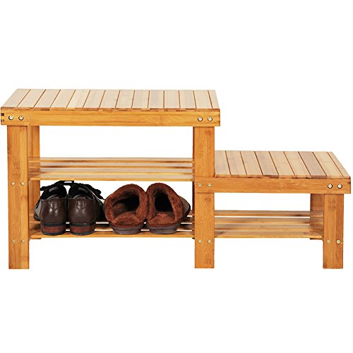 -. Title : 2 Tier Bamboo Shoe Bench Entryway Storage Rack with High and Low Levels for Adult and Child