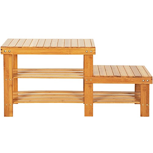-. Feature : MULTIFUNCTIONAL BAMBOO SHOE BENCH: 100% natural bamboo, environment friendly and sturdy; 2 tiers bamboo rack & storage bench for shoes, boots, bags, plants, toiletries, baskets in entryway, bedroom, bathroom, closet, etc / INNOVATIVE DESIGN: Two-tier shelves for short shoes, 2 seat heights make it a great shoe shelf and shoe bench for you and your child / THOUGHTFUL WORKMANSHIP: Natural and smooth finish, rounded corners, protect your family from being scratched, especially the children / EASY ASSEMBLY AND DISASSEMBLY: Antirust and durable screws can be installed and disassembled repeatedly, tools provided / SPACE-SAVING STORAGE SHOE BENCH: Product size: (35.43 x 11.02 x 17.72)" / (90 x 28 x 45)cm (L x W x H), slim figure to put in your cubby closet, wardrobe, cabinet, garage, entrance, foyer and other storage area