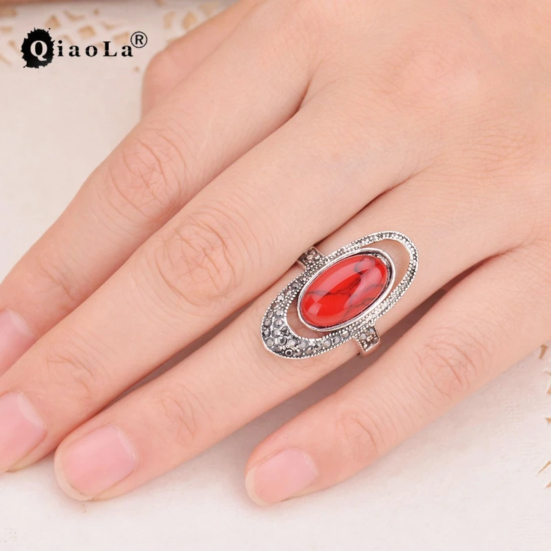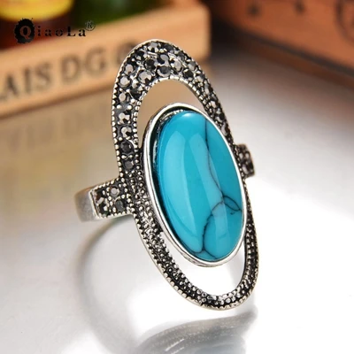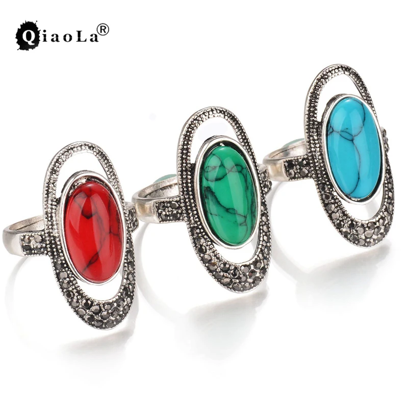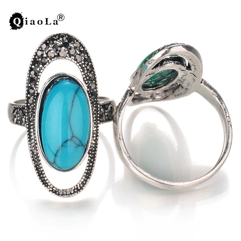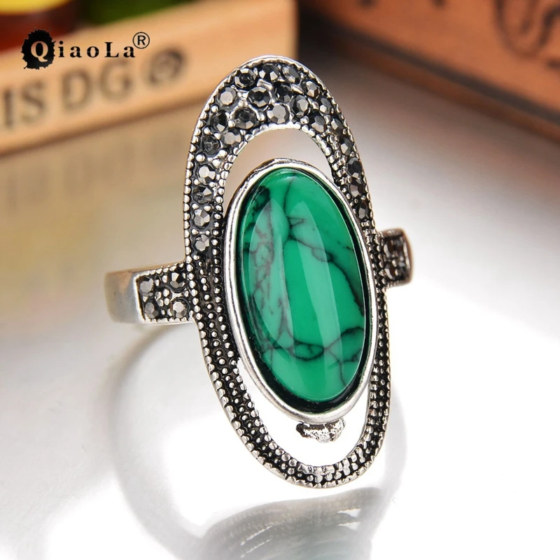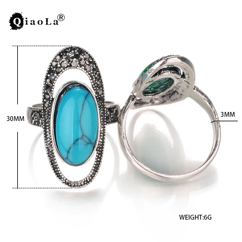 Name of Item:Antique Silver Turquoise Mosaic Rhinestone Ring For women