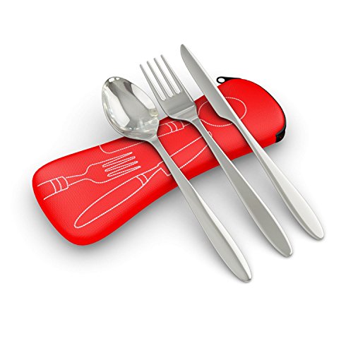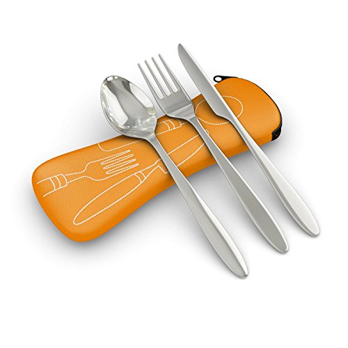 Studio : Damomon Publisher : Damomon Product Description Damomon Portable Cutlery Utensils Tableware Set Stainless Steel Knife Fork Spoon with Cute Case for Hiking Climbing Outdoor Picnic. Introduces a New Improved Stainless Steel Cutlery Set Perfect for Your Next Trip. The ultimate carry around cutlery set that features: 1.High quality knife fork and spoon. Made of stainless steel that would handle your outdoor requirements. 2.Weighing only 0.26lbs, allowing you to travel around care-free. 3.Easy and comfortable to use, clean, and repack. 4.Comes in a stylish, well designed case that helps you keep the ultimate clean. Specification: Length: 7.16inches(Knife) 7inches(Fork) 6.93inches(Spoon) 7.9inches(Case) Weight: 0.95ounces(Knife) 0.83ounces(Fork) 1.3ounces(Spoon) If you're looking for your next set of cutlery, that combines both portability and durability, look no further, you just found your match.