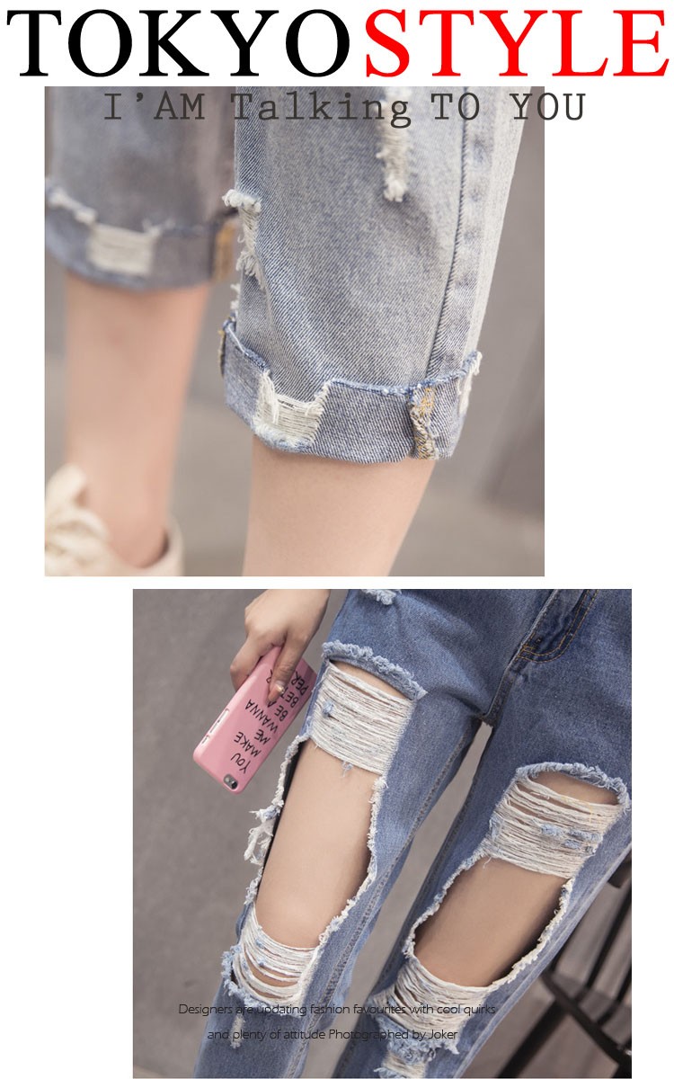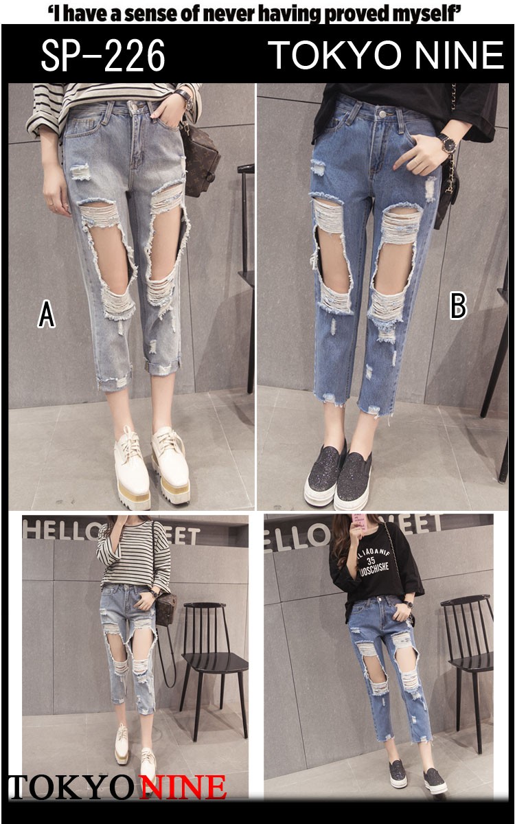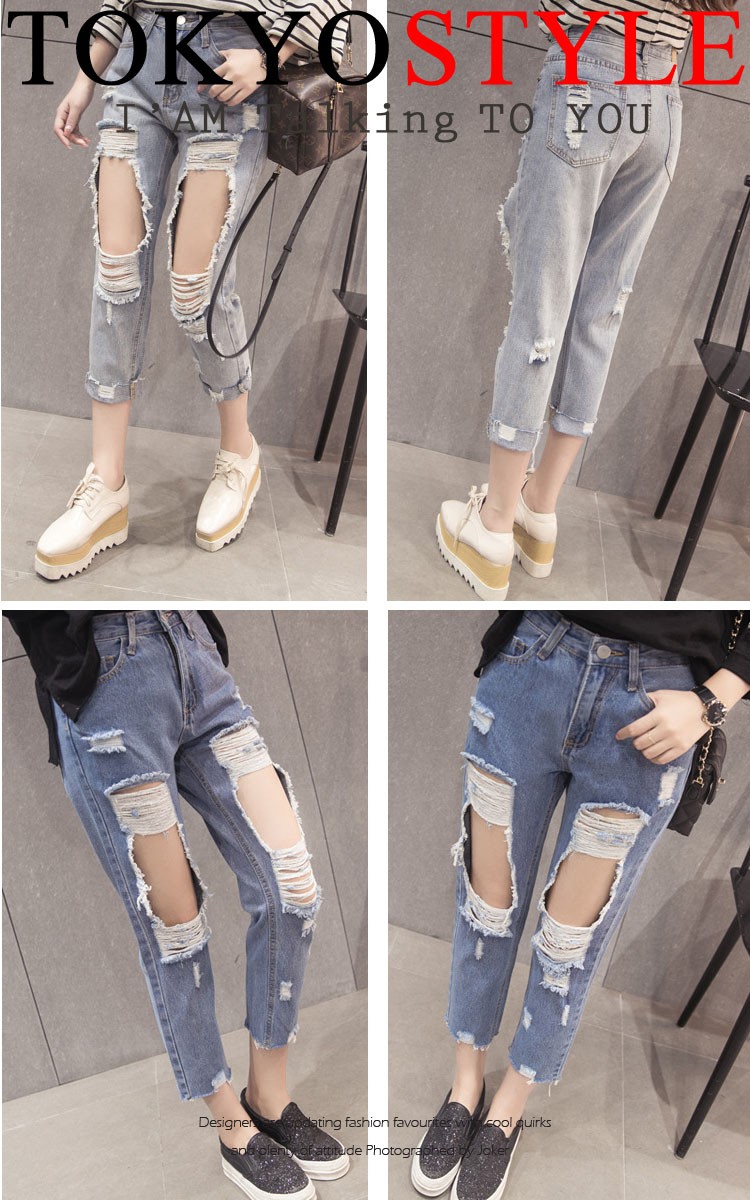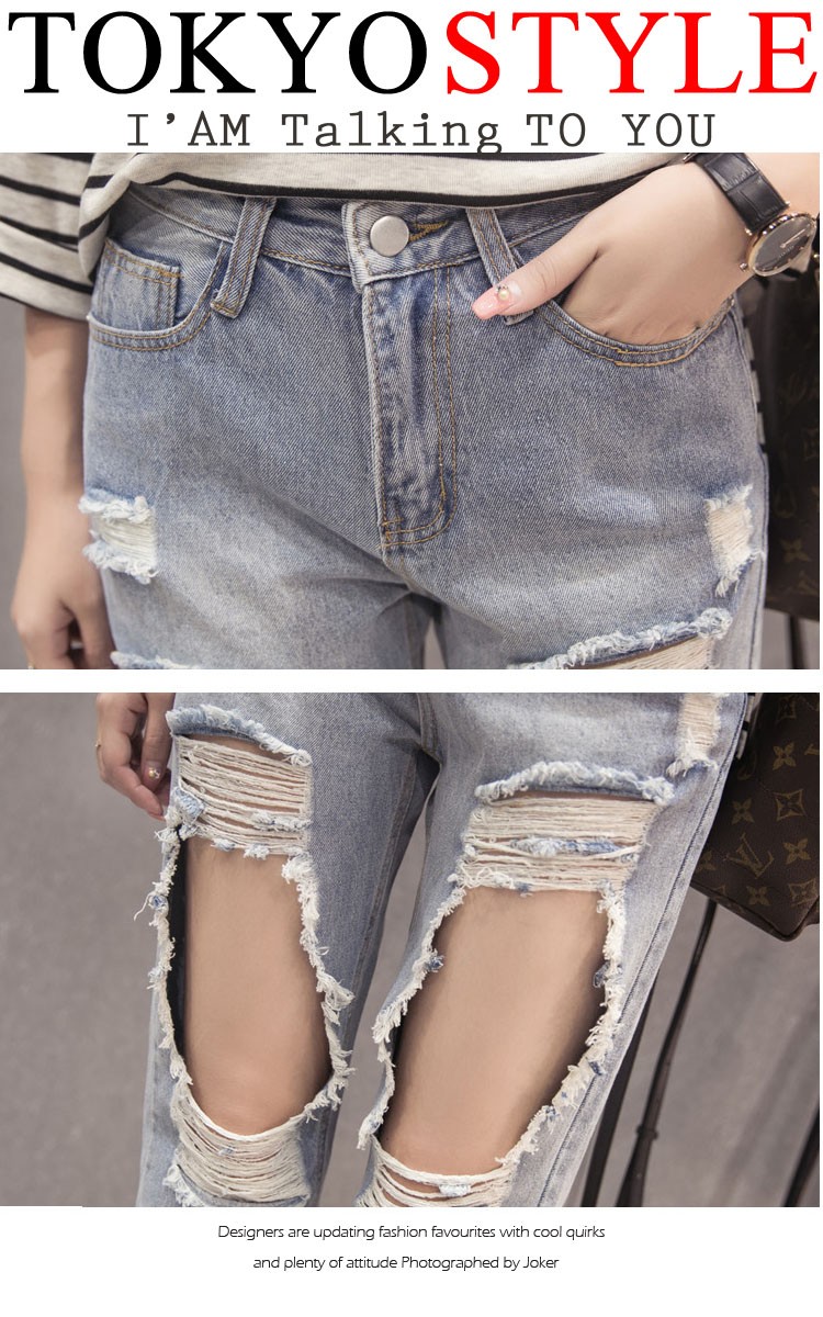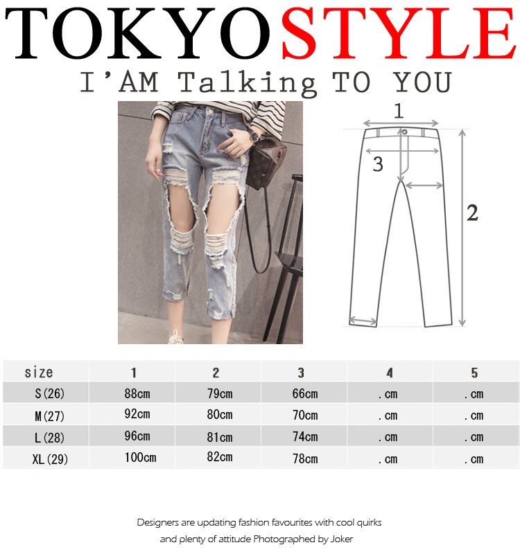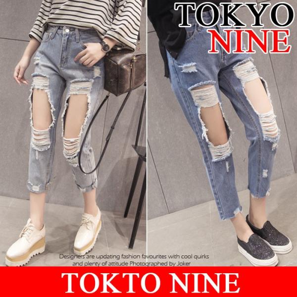 太もも部分が大きくあいたダメージ具合がお洒落に決まります♪