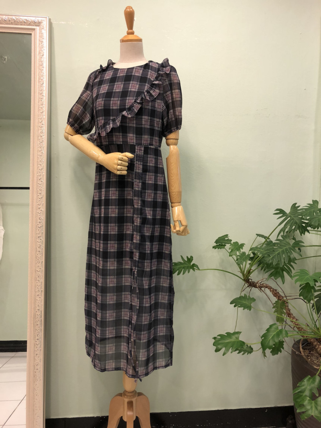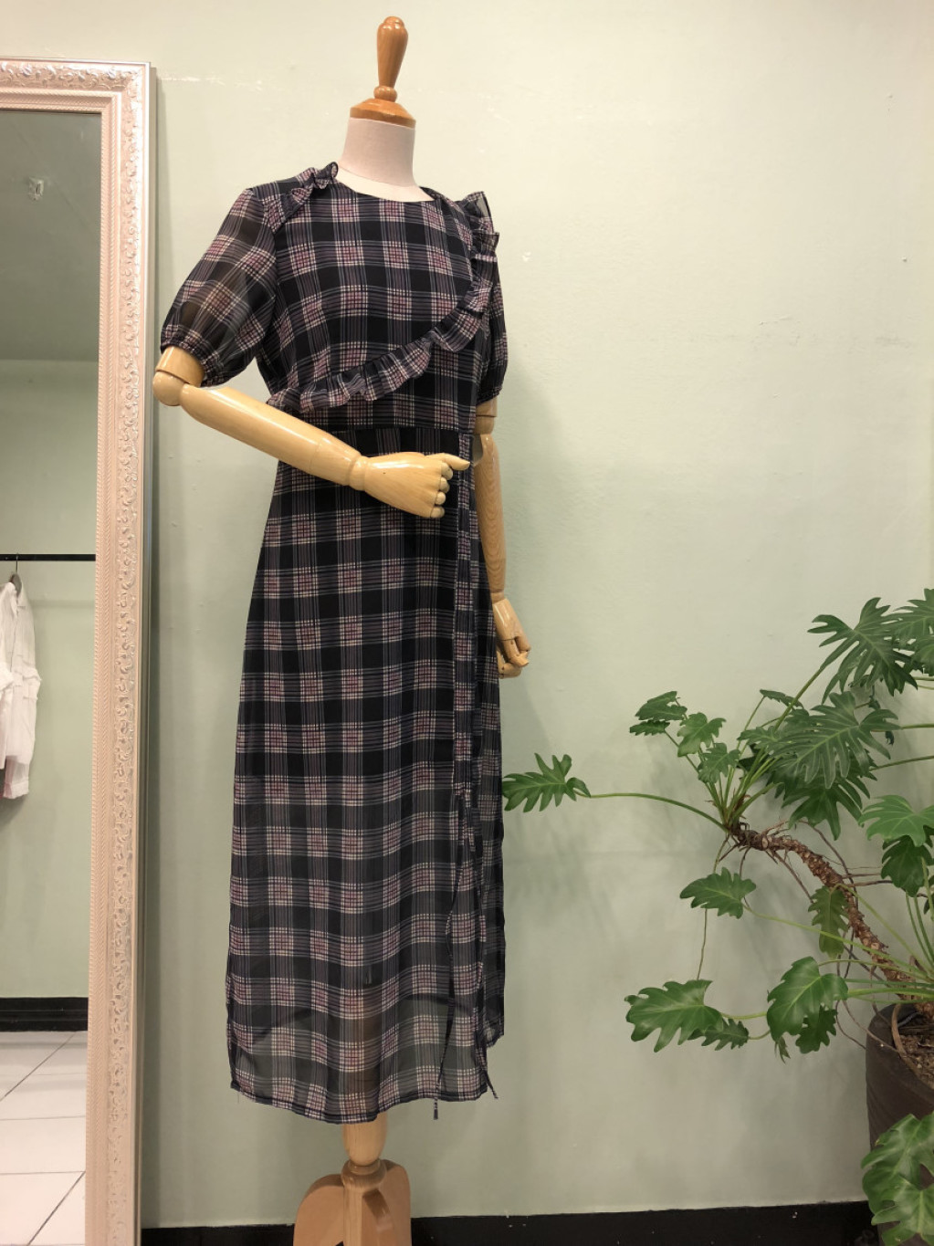 체크 롱원피스를 소개해 드려요