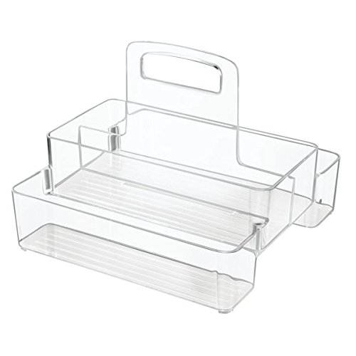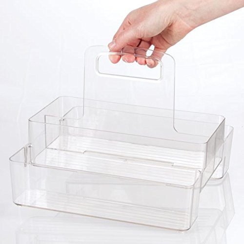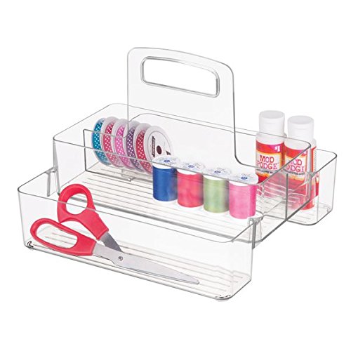mDesign Tiered Craft and Sewing Supplies Organizer Tote with Handles - Divided, Clear