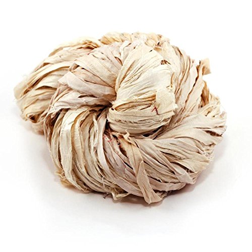 Vintage White Premium Super Bulky Sari Silk Ribbon Yarn | Dyeable Beautiful Handcrafted Sari Silk Ribbon for Knitting, Crocheting, Weaving, Spinning or Gift Wrapping by Darn Good Yarn | 43 Yards, 100g