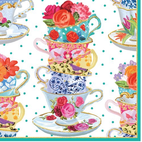 -. Binding : Kitchen -. Brand : Caspari -. Color : multi color -. Feature : Package of 20 / 10" x 10" open / Triple-Ply Paper Napkins are printed exclusively for Caspari in Germany -. PackageQuantity : 1 -. ProductGroup : Kitchen -. ProductTypeName : KITCHEN -. Title : Caspari Paper Napkins 11810C Tea Cups Cocktail Napkins Pack of 20
