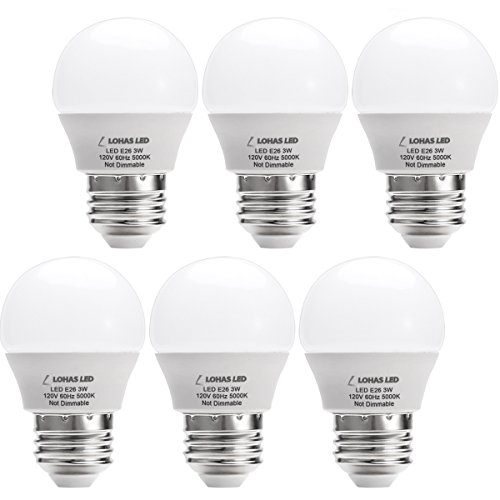 LOHAS LED G14 Light Bulb, 3W Daylight White 5000K LED Energy Saving Light Bulbs, 25 Watt Equivalent LED Lights for Home, E26 Medium Screw Base (6 Pack)