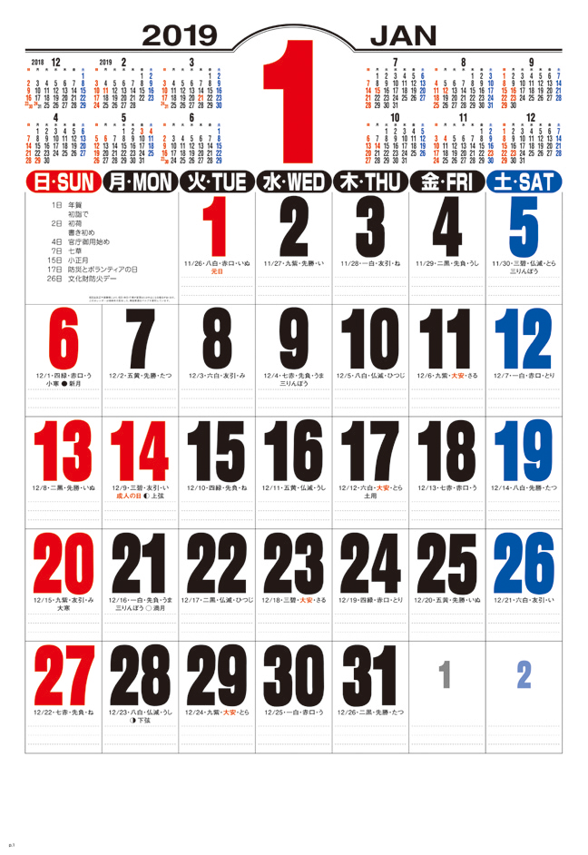 ●毎月年表付きでオフィスにご家庭に、見やすさ使いやすさ抜群のジャンボカレンダー。