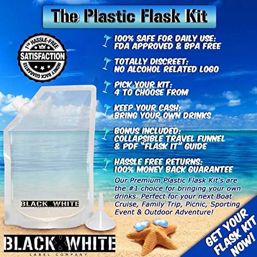✔ TOTALLY DISCREET: All Our Plastic Liquor Rum Runner Cruise Kit Flasks Are Branded With Our Non-Alcohol Related Black & White Label Company Logo, So They Won't Bring Unwanted Attention By Authorities To Your Beverage Of Choice. Flasks Are Non-Metallic & Cannot Be Detected By Scanners. Our Rum Runner Smugglers Cruise Kits Will Give You The Best Chance To Smuggle Sneak Alcohol On Your Next Cruise, Trip Or Event.