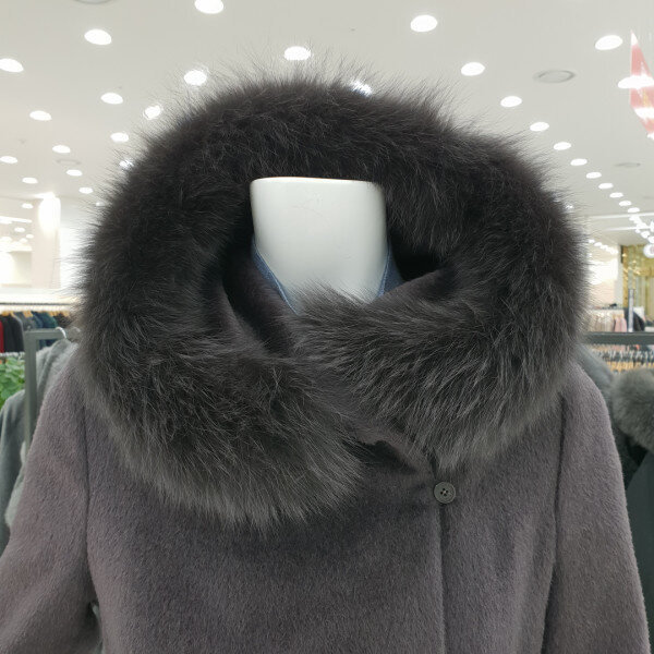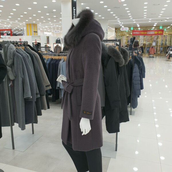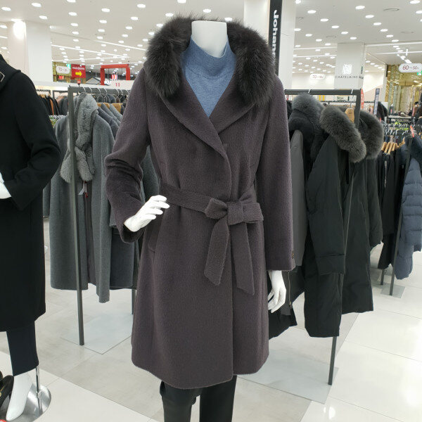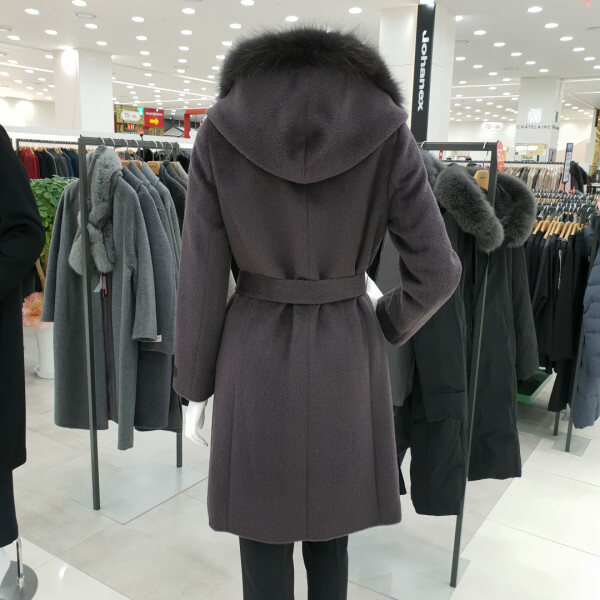 폭스 후드 코트로 모 레이온과 알파카혼방제품으로 멋진 허리끈으로 연출과여우털트리밍 후드로 예쁜 분위기를연출합니다