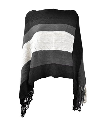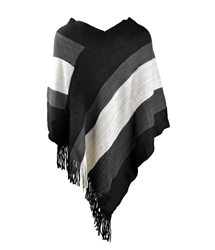 -. Title : ZLYC Women Color Block Stripe Blanket Poncho Shawl Cape Wrap Scarf with Fringe