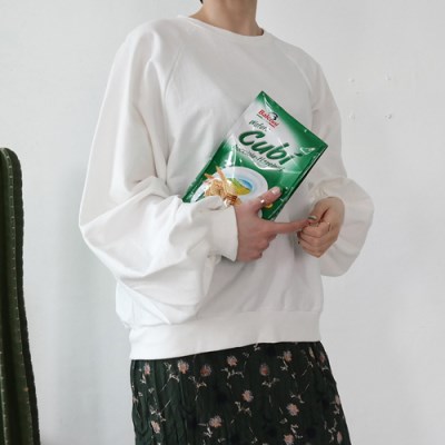 아방하고 귀여운 핏의 맨투맨이예요. 전체적으로 루즈한 핏으로 착용감이 편하고, 벌룬 소매라인으로 귀여운무드가 느껴졌어요.