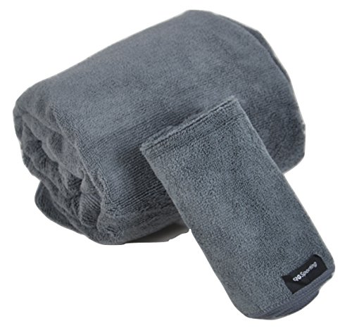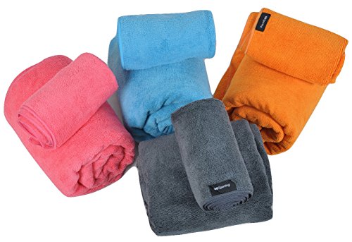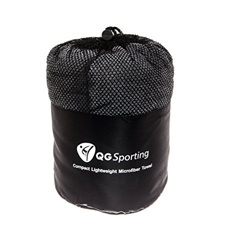 Compact Lightweight Microfiber Travel Towels from QGSporting. Absorbent Quick Drying Large Towel with small Towel/Scarf & Mesh Storage Bag. For the Beach, Yoga, Golf, Gym, Football, Camping & more …