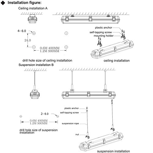 ✔ EASY INSTALLATION - This Vapor LED Tight Fixture can be surface mounted (mounting clips included) or suspended, NO BALLAST TO EVER REPLACE!