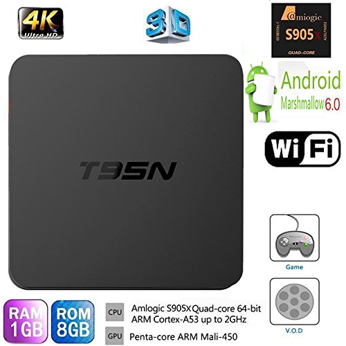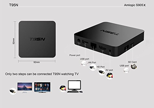 -. Feature : Android 6.0 OS can be compatible with plenty of android APP. Let's customize your home TV and turn it into smart TV.You can download any Android applications or Google ,playing them on the big screen. / Good pairing of Amlogic S905x Quad-Core Cortex A53 CPU and Mali-450 5-Core GPU.The powerful abilities of processing and computing. 1G DDR3, 8G EMMC Flash. More fast operation,No more stuck.Not freezing any more. / Mali 450 Quad-Core high performance 3D GPU processor delivers the necessary graphics for 2D/3D Games and ultra HD quality movies, all your favorite games are on the big screen. / Support HDMI / AV OUT variety of video output, 2 USB interfaces to meet the needs of different users.support WIFI b / g / n 802.1.1,4K RJ45, and other online mode, to meet different customer needs of different TV. / Super Mini Size, Just as your palm size, Beautiful shape and artful design, easy to take with. T95N Mini is absolute the best and most versatile home media experience in the market. to share with friends, Your movies, TV Shows, Mofusic all at your fingertips. Online forums, tutorials, and videos are plenty.