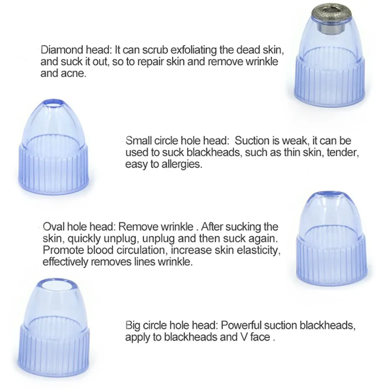 Please use the hot towel before use to help open the pores, the effect will be better.Pull the wrinkle to use low-grade suction, and a short time to contact the skin suction.Do not stay alone for a long time.