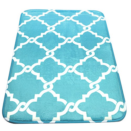 Bath Mat, U'Artlines Comfort Extra Thick Memory Foam Bath Mat Set Bathroom Mats Shower Rugs with Sbr Back and Flannel Surface (19.69x31.5", Blue)