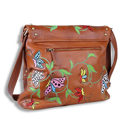 Amorucio Crewel Embroidery Women Leather Shoulder Bag