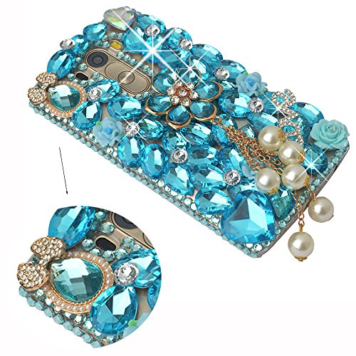 LG G Stylo Case, LG G Stylo Bling Case-Spritech(TM) 3D Handmade Colorful Diamond Bling with Butterfly Flower Decoration Decoration Hard Clear Case for LG G Stylo
