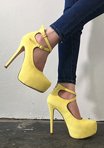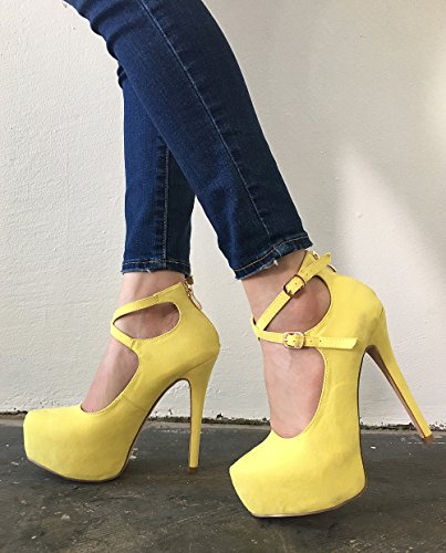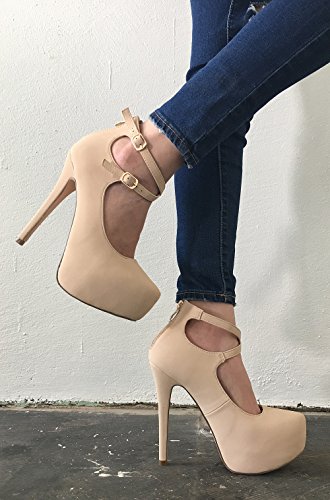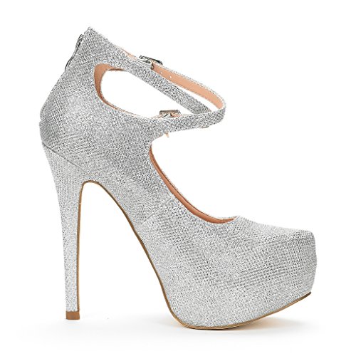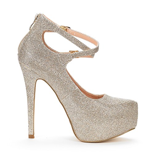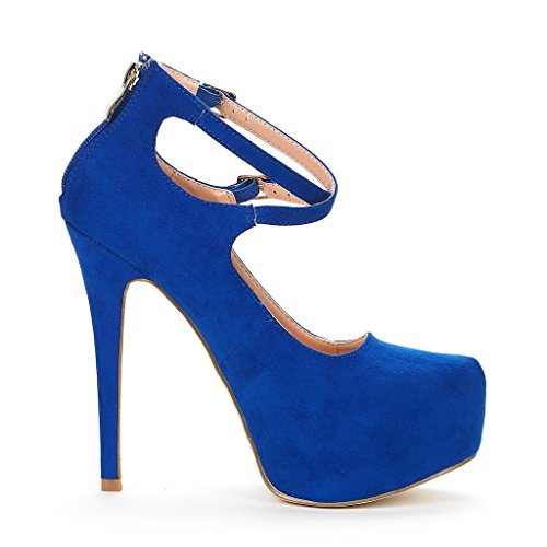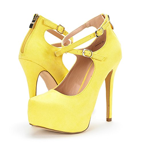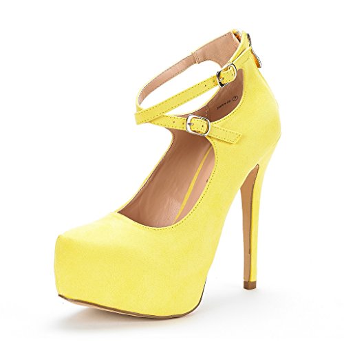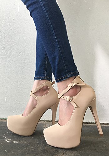 DREAM PAIRS SWAN-20 New Women's Buckle Ankle Strap Almond Toe High Heel Platform Pump Shoes