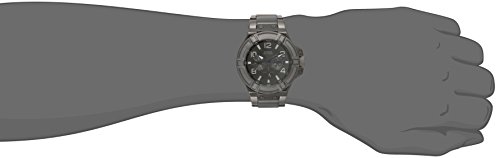 -. Feature : Round watch in gunmetal-tone stainless steel with monochromatic dial featuring silver-tone hour markers and two subdials / Analog-quartz movement with analog display / Protective mineral crystal dial window / Features deployment-clasp closure / Water resistant to 330 feet (100 M)