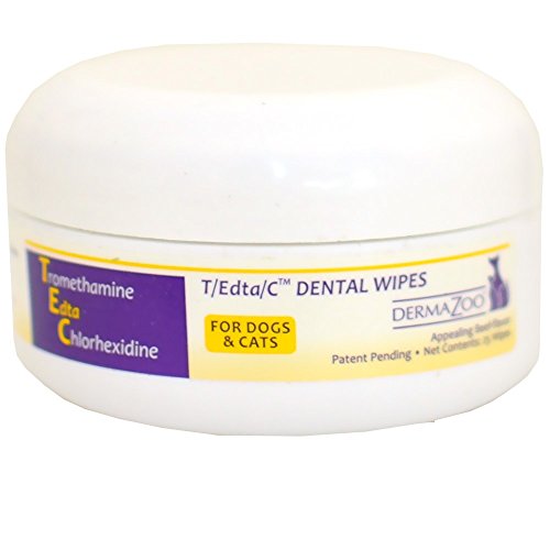 DermaZootrade; T/Edta/Ctrade; Dental Wipes are the perfect way to keep your pet's teeth and gums clean. These specially formulated dental wipes feature an appealing beef flavor that animals love so that they're easy to use on your pet. Each wipe is formulated with chlorhexidine gluconate, a substance known to reduce the formation of plaque and slow its calcification into tartar. DermaZoo T/Edta/C Dental Wipes are made in the USA and are safe for both cats and dogs. This container includes 25 dental wipes to ensure that you can keep your pet healthy for weeks to come. Dental disease is the most common clinical condition affecting cats and dogs today so keep your pet safe by ordering these wipes today Key Features: Formulated with chlorhexidine gluconate to reduce plaque formation and calcification Contains 25 wipes that are safe for cats and dogs Made in the USA
