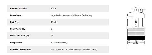 Master Lock 37KA Shrouded Laminated Steel Pin Tumbler Padlock, Keyed Alike, 1-9/16-Inch Wide Body, Shackle Fits 9/32-Inch Or 1/2-Inch Diameter