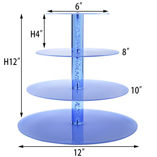 Studio : DYCacrlic Publisher : DYCacrlic Product Description Other Cupcake Stand Choice: 3 4 5 Tiers, Round and Square Shape, Clear Yellow Pink Blue White etc color, Bubble Rod Pillars etc, You can go to our store (DYCacrlic) to find.just put into the store name DYCacrlic in search box.Don't just serve your guests - add special shine to your next event with DYCacrlic acrylic tiered cupcake tree / carrier! From appetizers to desserts - add decoration as well as organization to easily serve your guests. Customize your look with 3, 4 and 5 tier stands to fit any size event. Each tier is connected securely with screws instead of snapping in place.Thick plates and large support pillars are made with durability in mind and each stand comes with a bonus carton for convenient and safe carrying. We pride ourselves with superior customer service and guarantee you'll love your DYCacrlic serving and display stand. Blue Cupcake Carrier/ Acrylic Cupcake Stand Dimensions 1. Diameter of each tier: 6" 8" 10" 12" 2. Thickness of each tier: 4mm 3. Height of Base Rods (feet): 2" 4. Height between each tier: 4" 5. Total height of stand: 14" 6. Stand Capacity : Holds approximately 30-35 cupcakes (Please check out the pictures for measurement guide.) 7. Bonus Each stand comes with a bonus carton for convenient and safe carrying. Extra hardware. Comes with a screw driver. We are the manufacturer who specific products on all kinds of acrylic Cupcake Fruit Dessert Stand. We oversee and closely monitor the quality and design of our products. Our cupcake stands are highly polished on all surfaces and edges. We are confident you will love our DYCacrlic plastic cupcake stand! 0