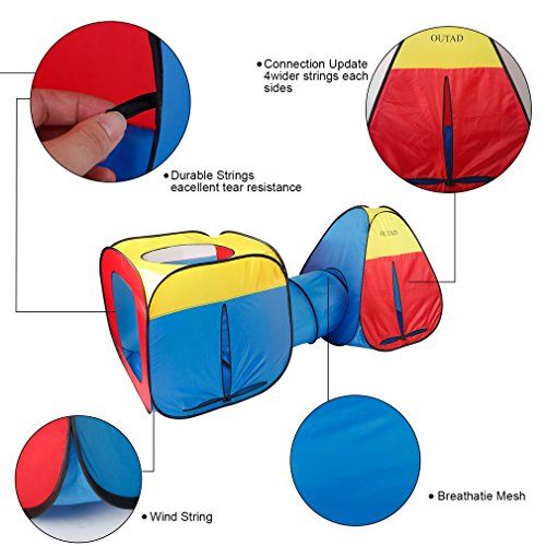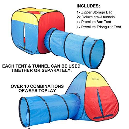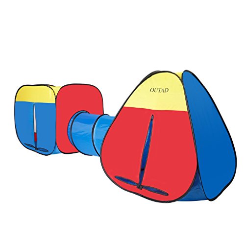 Studio : OUTAD Publisher : OUTAD Binding : Toy Product Description Features: 3 in 1 pop up children play tent tunnel, kids play tents, indoor and outdoor use. The adventure playground includes one square tent house, one triangle tent house and a tunnel, while each component can be used together or separately into a fun filled playground. Fast and easy set up and fold by pop-up design, lightweight and portable with a zipper carry bag. Multipurpose toddler toys: portable and folding house makes you take it to any place,and you can open or close it quickly, giving the baby independent space. A lightweight zipper carry bag for convenient storage, great for travel. It is very suitable for children's playing,and let them have their own space. Great tent for dogs, cats, and pets as well.