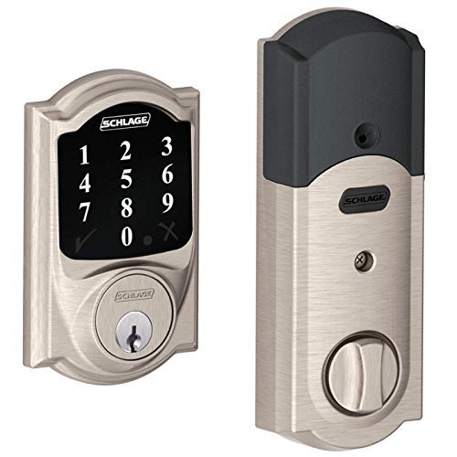 -. Binding : Electronics -. Brand : Schlage Lock Company -. EAN : 0741587485223 -. Feature : New model includes two keys instead of one / Anti-pick shield protects against lock tampering / Meets ANSI Grade 1 security standards / LED backlight for easy keypad access in the dark / Z-Wave technology connects to your home automation system and allows you to lock or unlock your door remotely via the web or smartphone. Requires a Z-wave controller/hub, sold separately -. Model : BE468CAM619-2key -. MPN : BE468CAM619-2key -. PackageQuantity : 1 -. PartNumber : BE468CAM619-2key -. ProductGroup : CE -. ProductTypeName : CONSUMER_ELECTRONICS -. Title : Schlage BE468CAM619-2key Z-Wave Technology Connect Camelot Touchscreen Deadbolt with Two Key, Satin Nickel -. UPC : 741587485223